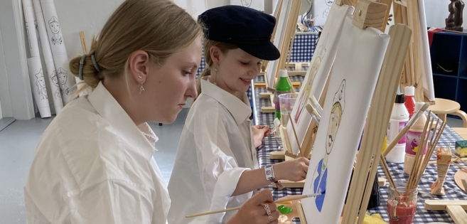 Du får kittel, malerpalet og lærred og så er det bare i gang. Dit maleri får du naturligvis med hjem.