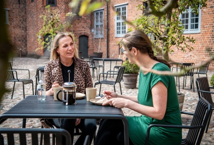 På solrige dage kan du nyde maden under åben himmel i slotsgårdens idylliske omgivelser.