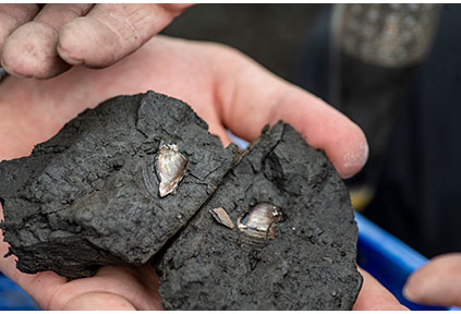 Du kan gå på fossiljagt på egen hånd eller med guide. Se tidspunkter for Fossil Hunting med guide i vores aktivitetsprogram.